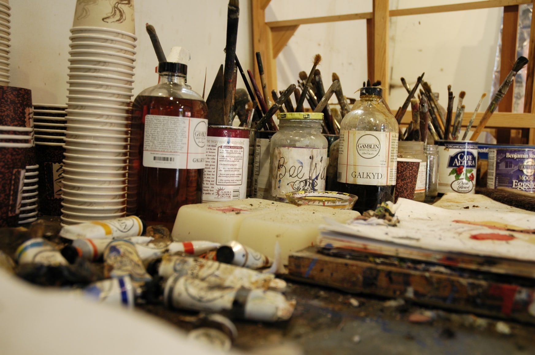 His paintings, made with a loose, spontaneous touch in thin layers, featured elemental shapes, arabesque forms and archetypal symbols folded into layered, luminously colored spaces. Though related to the works of earlier modernists like Joan Miró, Hans Hofmann and the Abstract Expressionists, his work was also in sympathy with the playful, pluralistic spirit of the late 70's and early 80's, and he was frequently included in group shows devoted to contemporary abstraction.